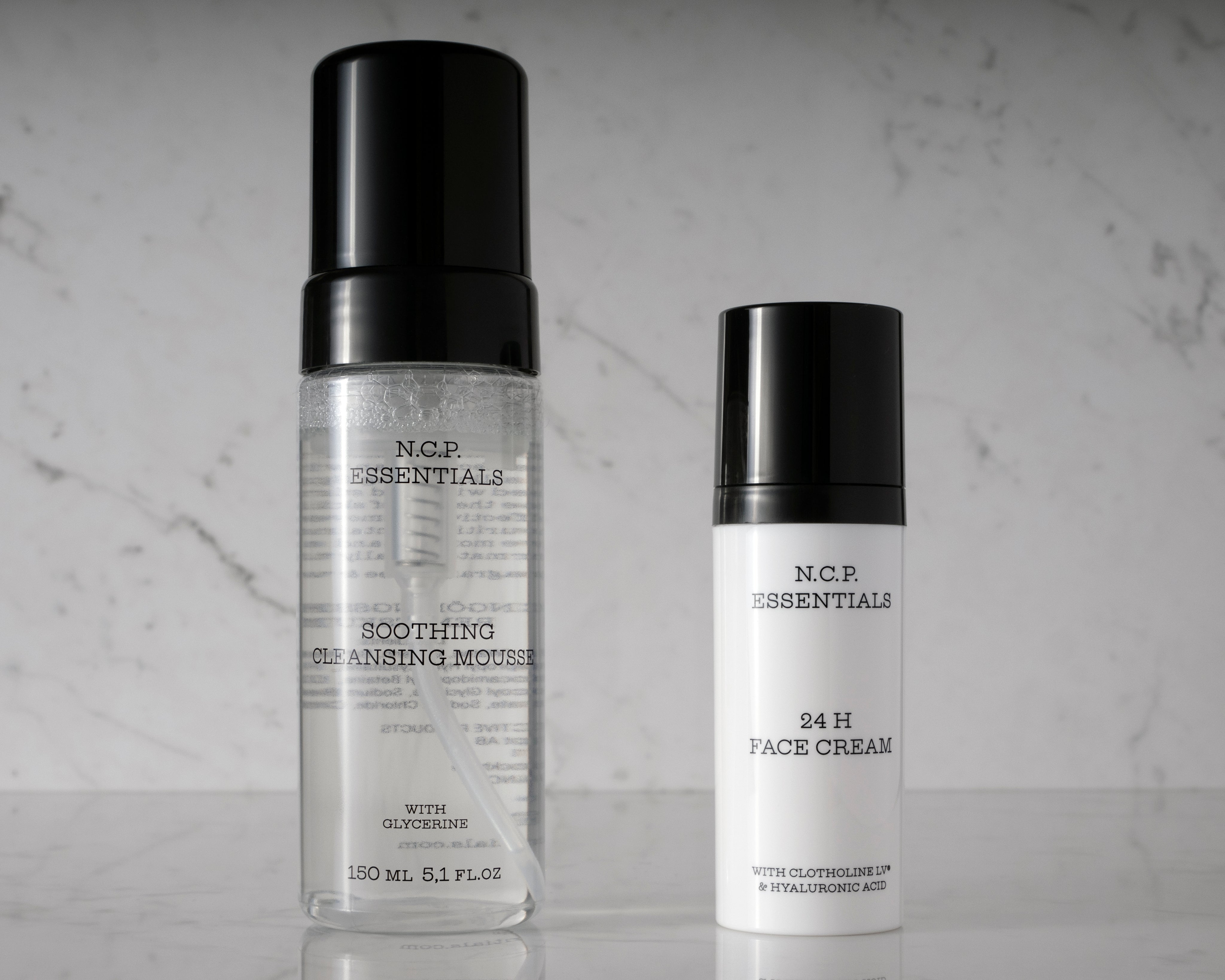 This kit includes an effective and mild cleanser, Soothing Cleansing Mousse, and a cream, 24 H Face Cream, that provide a lot of moisture to the skin. The face cream has a light texture, which makes it easy to apply and quick to absorb without leaving a sticky residue. It supports skin elasticity, lustre, and vitality. It is suitable for all skin types and can be used as either a day or night cream.